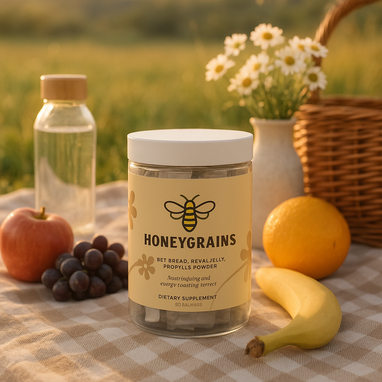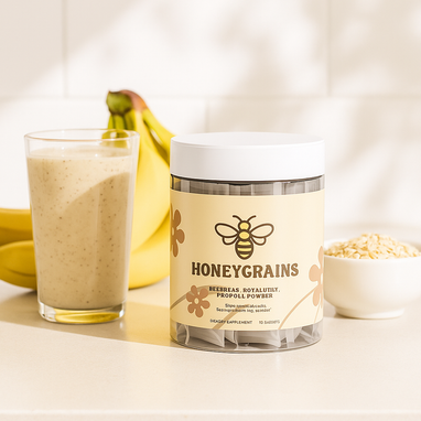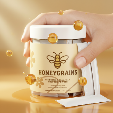 Elevate your daily nutrition with this blend of bee bread, royal jelly, and propolis for a natural boost of energy and wellness in every sachet.
